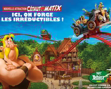"Les gaulois sortent le grand jeu avec des nouveautés à rendre jaloux le gratin romain ! Direction Cétautomatix, la nouvelle attraction familiale, pour tester les chars les plus fous de Gaule. Et bien sûr, le séjour gaulois ne s’arrête pas là. Profitez de 50 attractions et spectacles avant un repos bien mérité dans l’un de nos 3 hôtels au cœur de la forêt.